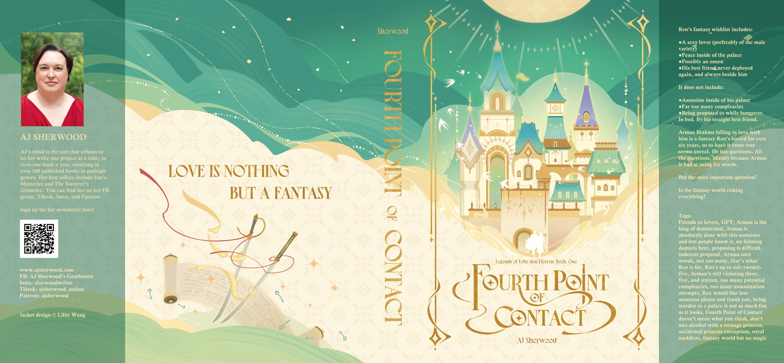 Dust jacket illustration and book design for the special edition of Fourth Point of Contact by AJ Sherwood, the first book of Legends of Lobe den Herren series.